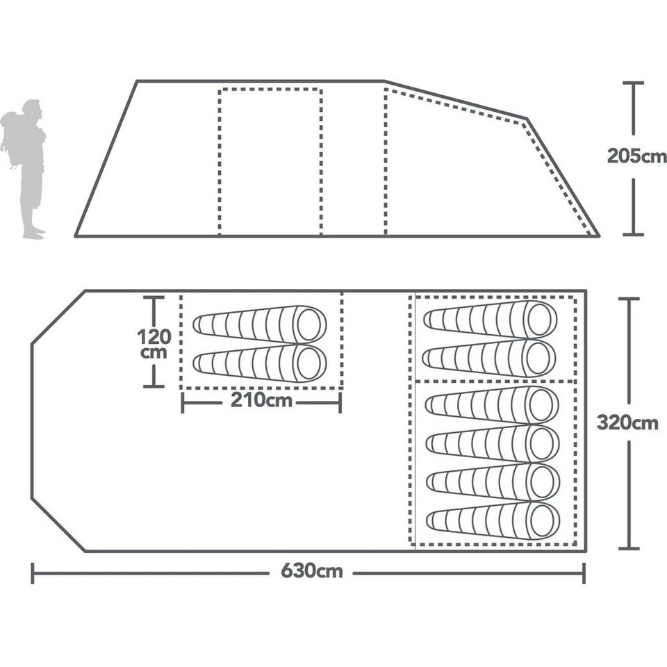 Complete with airflow ventilation, the air in the tent stays fresh and combines with the natural light from the clear window panels to give you a homely, liveable space. The bedrooms are darkened with Nightfall® technology to prevent rude awakenings from the early summer sun and come with a removable divider for adaptable space.