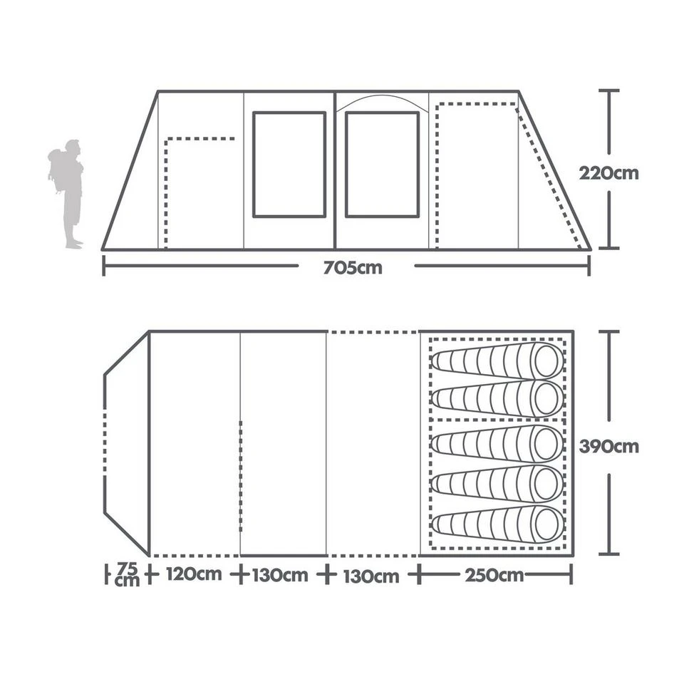 The new Nightfall ™ blackout technology in the removable bedrooms blocks out the sun to improve the quality of your sleep, helping you enjoy a lie in beyond daybreak. The premium tent comes with ample storage space and features a tall tunnel style design that provides plenty of headroom, even for tall adults.