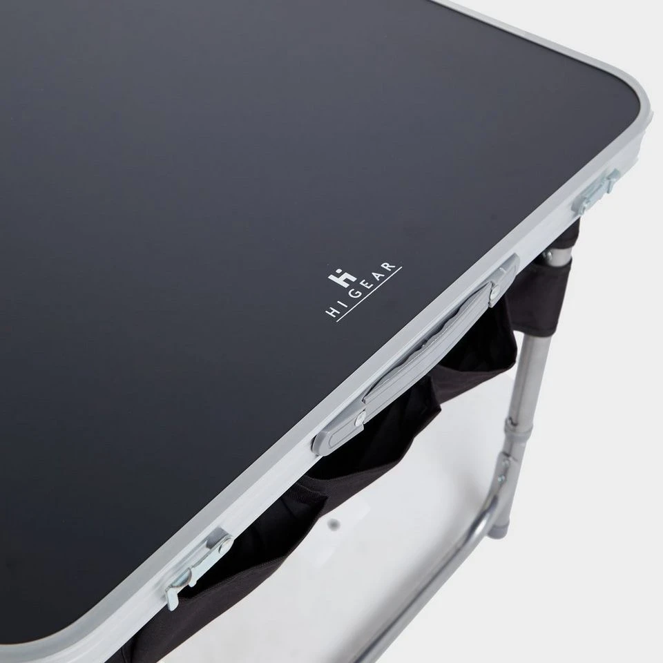 Keep your kit organised with this storage table featuring a zipped shelf compartment and handy side pockets, ideal for family camping.