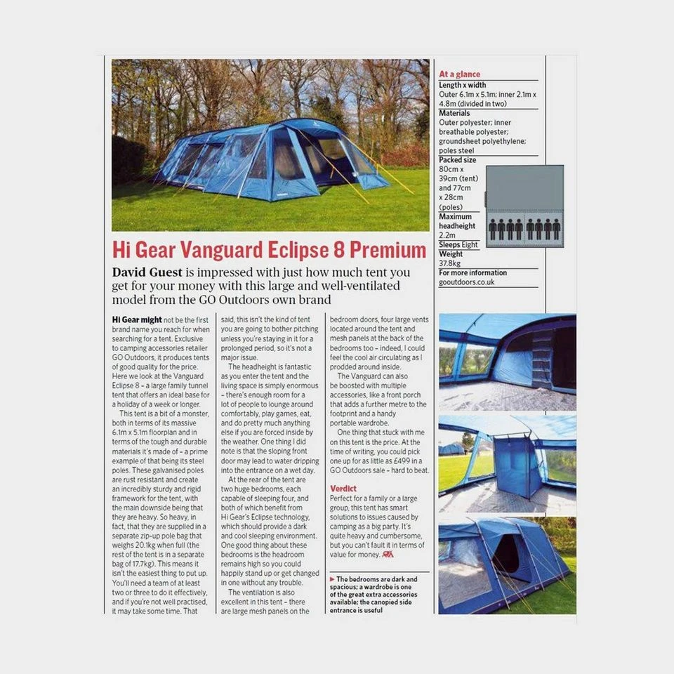 The Hi Gear Vanguard Nightfall 8 Premium is a sturdy steel-framed tunnel tent that boasts a spacious, airy living area and very comfortable bedrooms.
