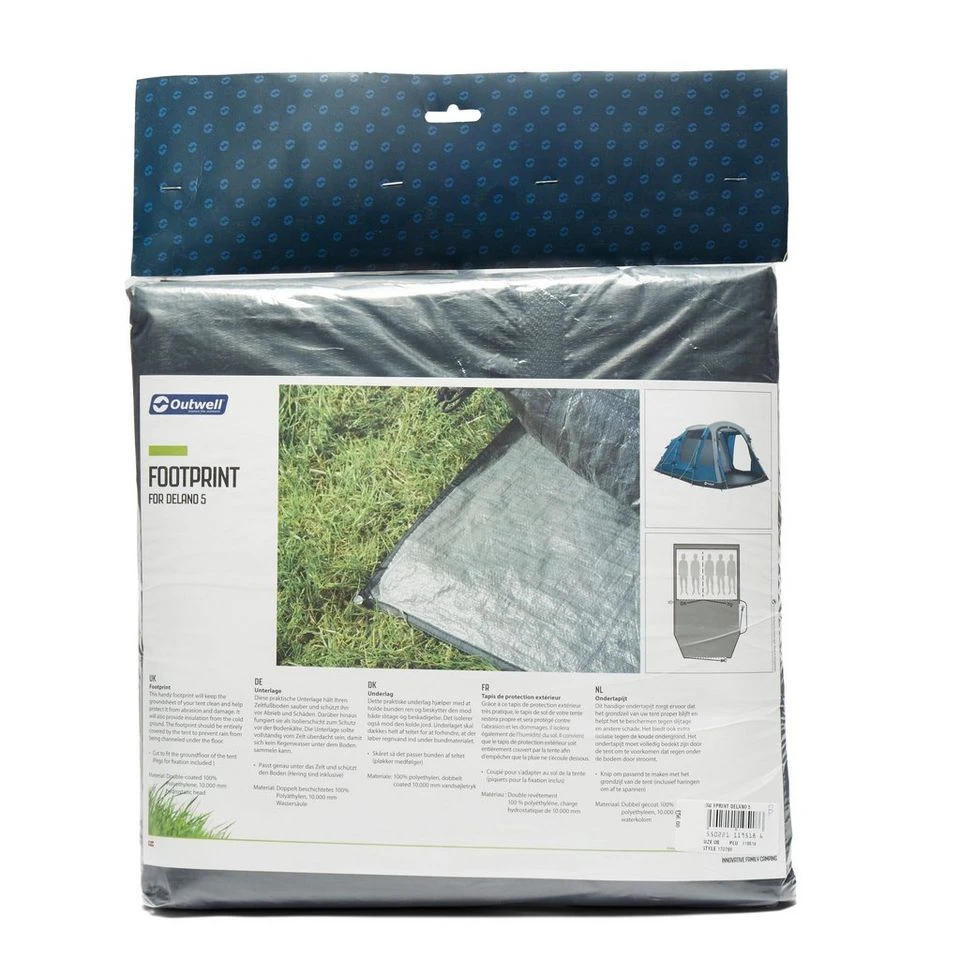 Outwell Footprints are designed for specific tents, adding a next-level of luxury and keeping the hard ground from intruding on your comfort. Built to fit exactly with the floorplan of the Delano tent, the footprint pegs down underneath your groundsheet, giving an extra layer of waterproofing and insulation. Wherever you pitch your home, the Delano Footprint delivers dry ground and comfort.